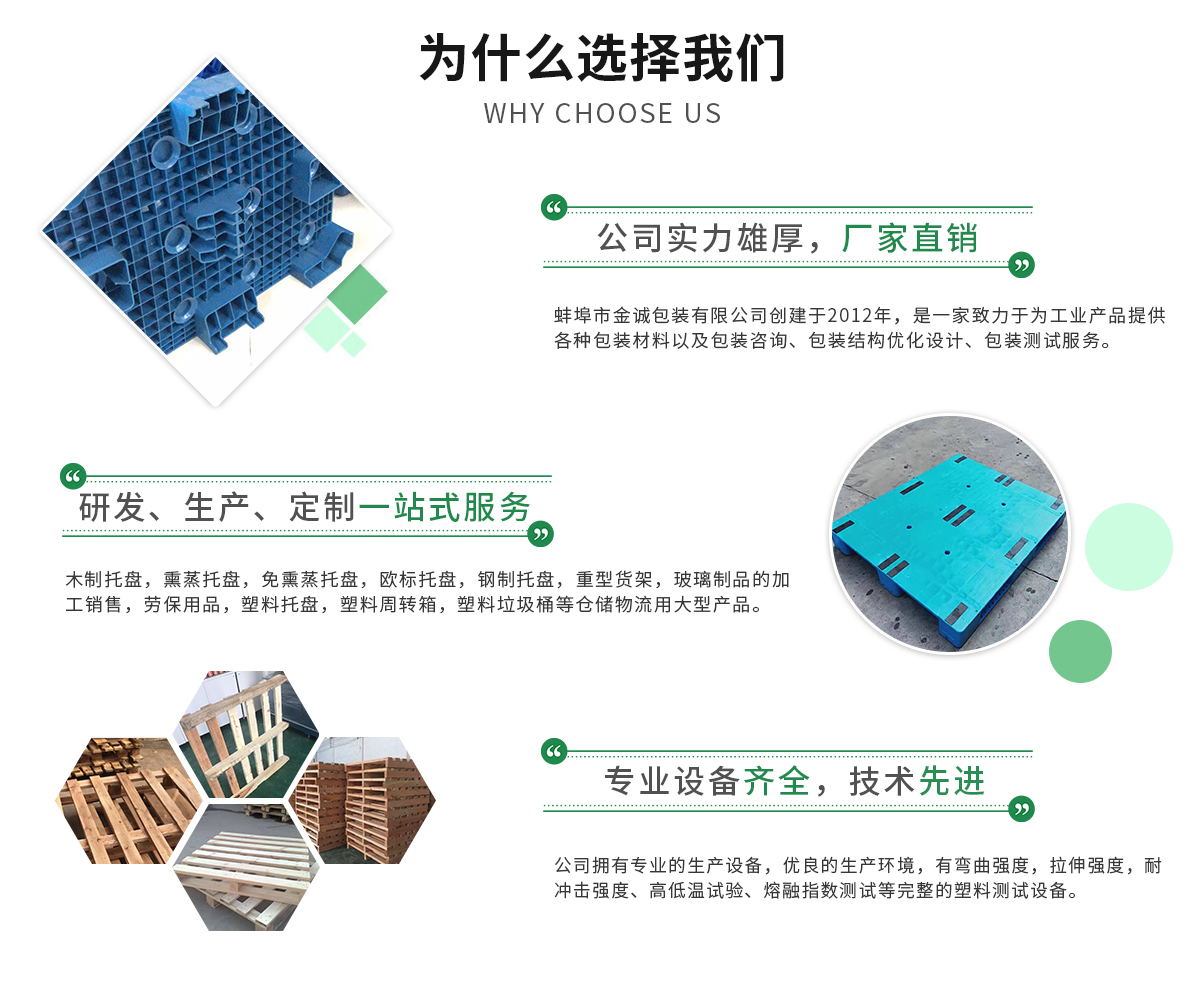 蚌埠市金誠包裝有限公司創(chuàng)建于2012年,是一家致力于為工業(yè)產(chǎn)品提供各種包裝材料以及包裝咨詢、包裝結(jié)構(gòu)優(yōu)化設(shè)計(jì)、包裝測(cè)試其中包括木制托盤,熏蒸托盤,免熏蒸托盤,歐標(biāo)托盤,鋼制托盤,重型貨架,玻璃制品的加工銷售,勞保用品...